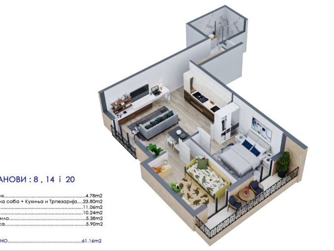 Dvoiposoban stan 61m2, II sprat, Rvati, Obrenovac