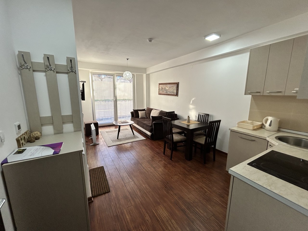 Moderan enterijer i direktna povezanost toplom vezom sa spa centrom i ostalim sadržajima kompleksa pružaju maksimalan komfor tokom boravka. Posebnu pogodnost predstavlja izlaz na privatnu terasu – dvorište površine 15 m², idealnu za uživanje na svežem planinskom vazduhu.