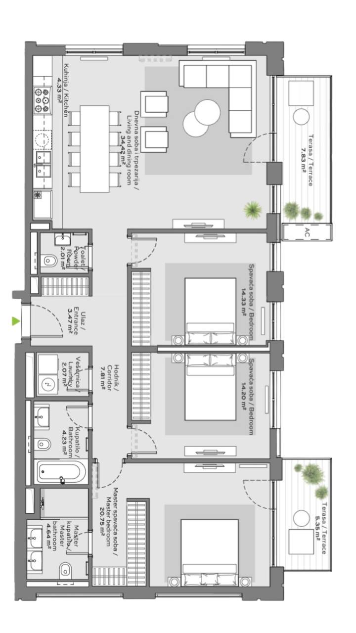 Zahvaljujući funkcionalnom rasporedu i atraktivnoj lokaciji, stan je idealan kako za luksuzno porodično stanovanje, tako i za poslovni prostor.