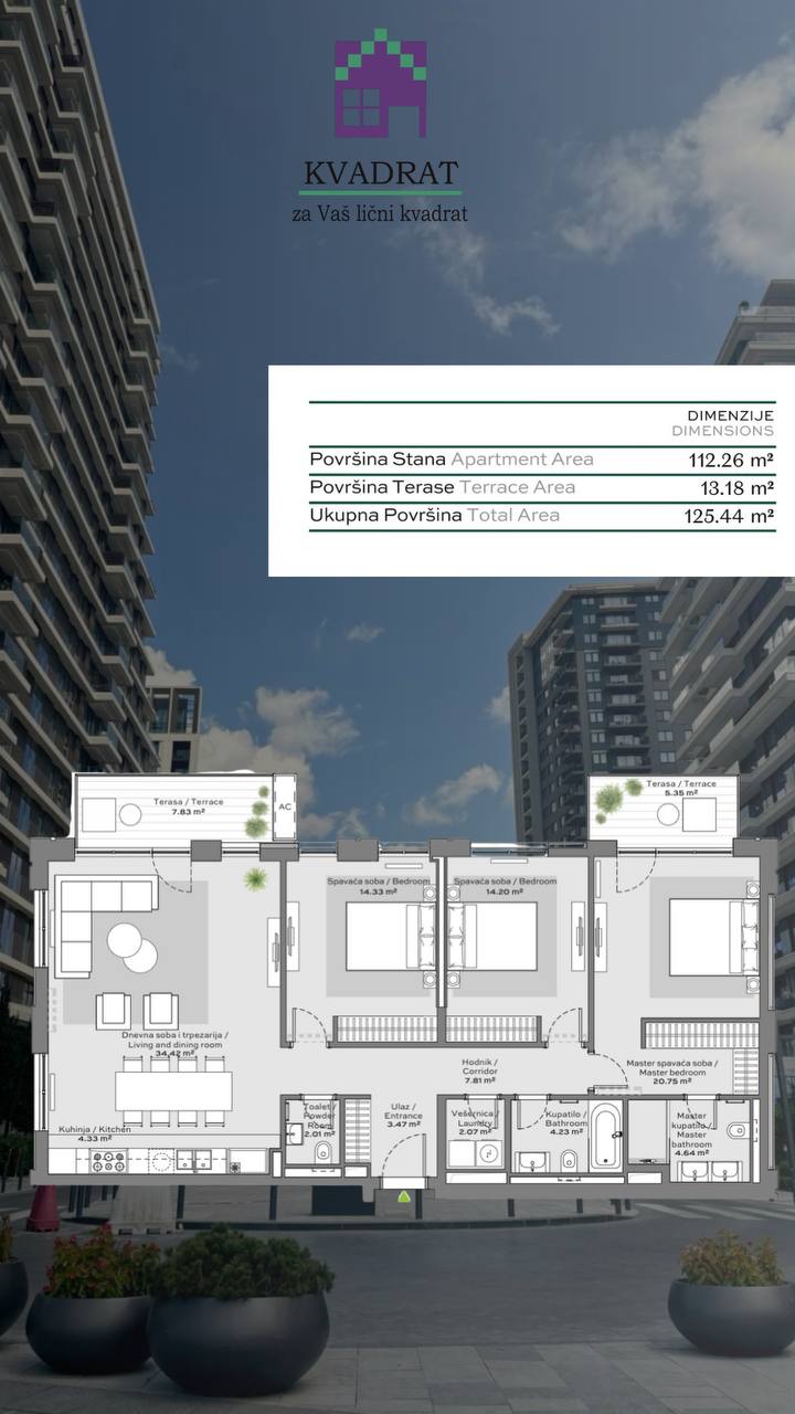 U ponudi je prostran i moderan četvorosoban stan površine 125 m², smešten u prestižnom kompleksu Beograd na vodi.