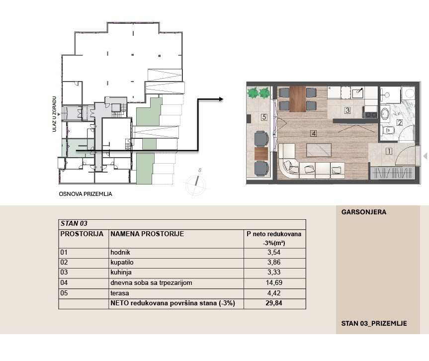 Na prodaju moderna i funkcionalna garsonjera površine 29.84 m², smeštena u centru Obrenovca, u kvalitetnoj novogradnji. Stan se nalazi u prizemlju stambeno – poslovnog objekta i odlično je organizovan kako bi prostor bio maksimalno iskorišćen.