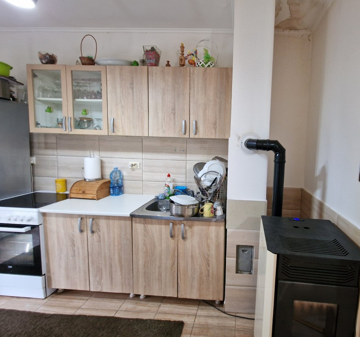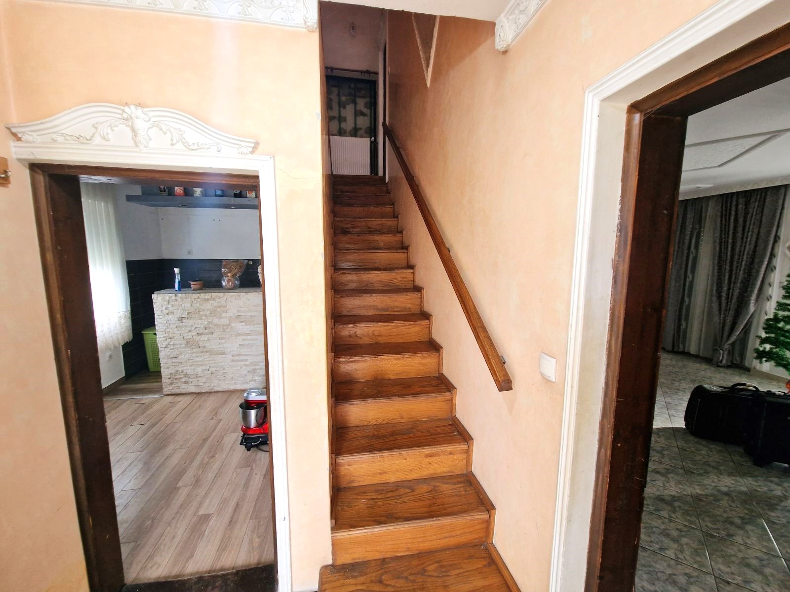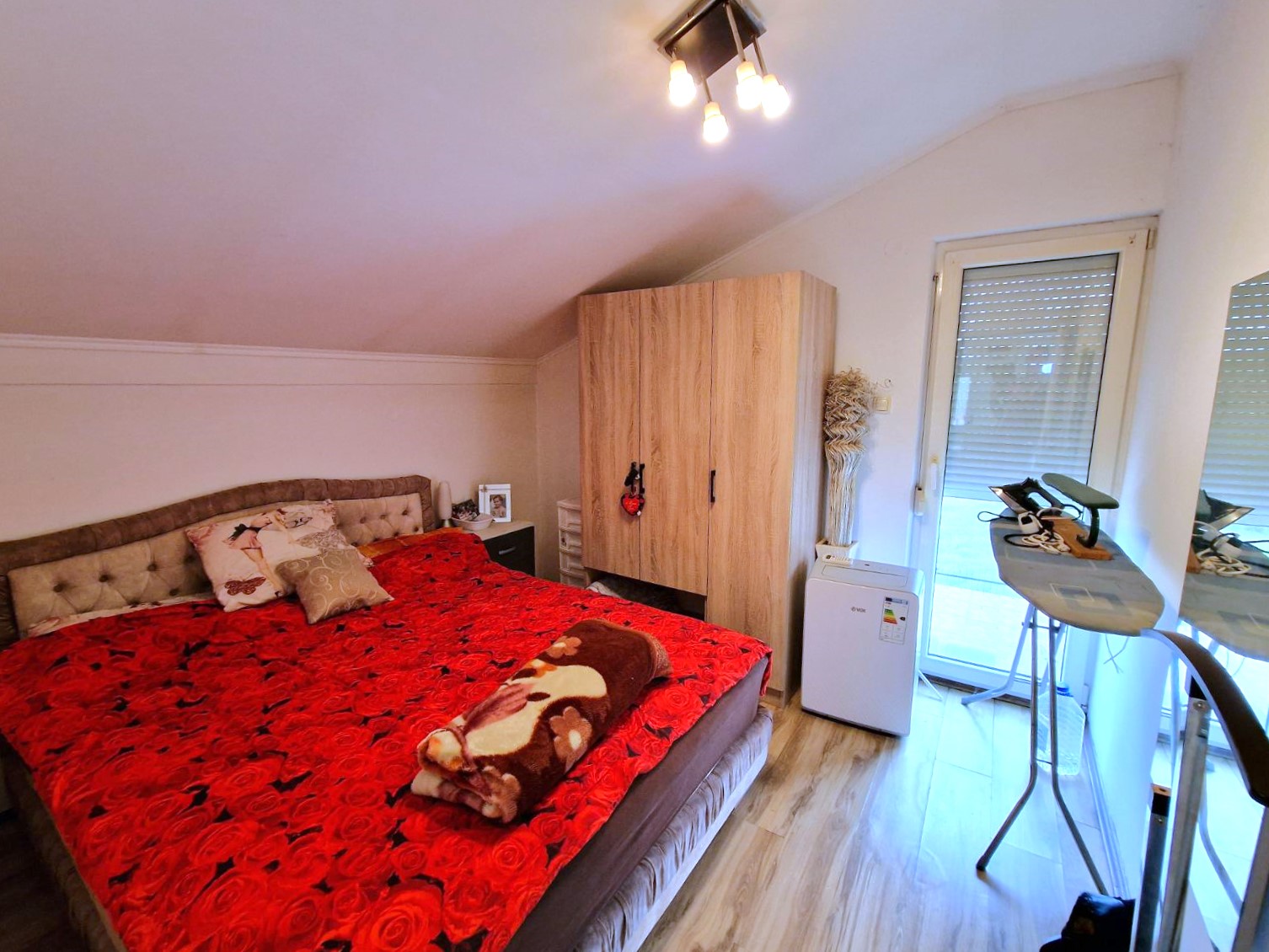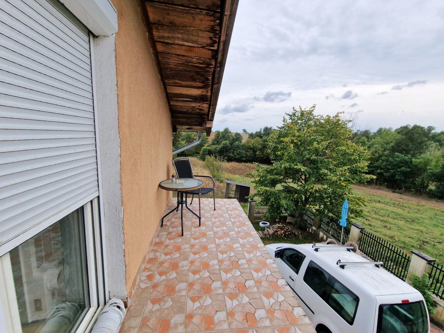 Drugi deo kuće podrazumeva spoljno stepenište koje vodi na potpuno zasebnu stambenu celinu koja poseduje dnevni boravak, spavaću sobu, kuhinju sa trpezarijom , kupatilo sa tuš kabinom kao i prostranu terasu. Na raspolaganju je i ostava u zadnjem delu kuće kao i komforna garaža sa rolo vratima.