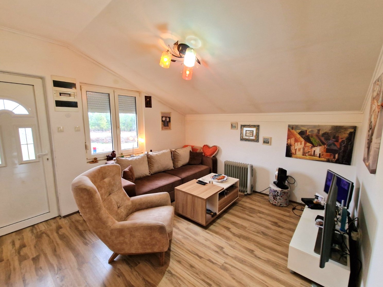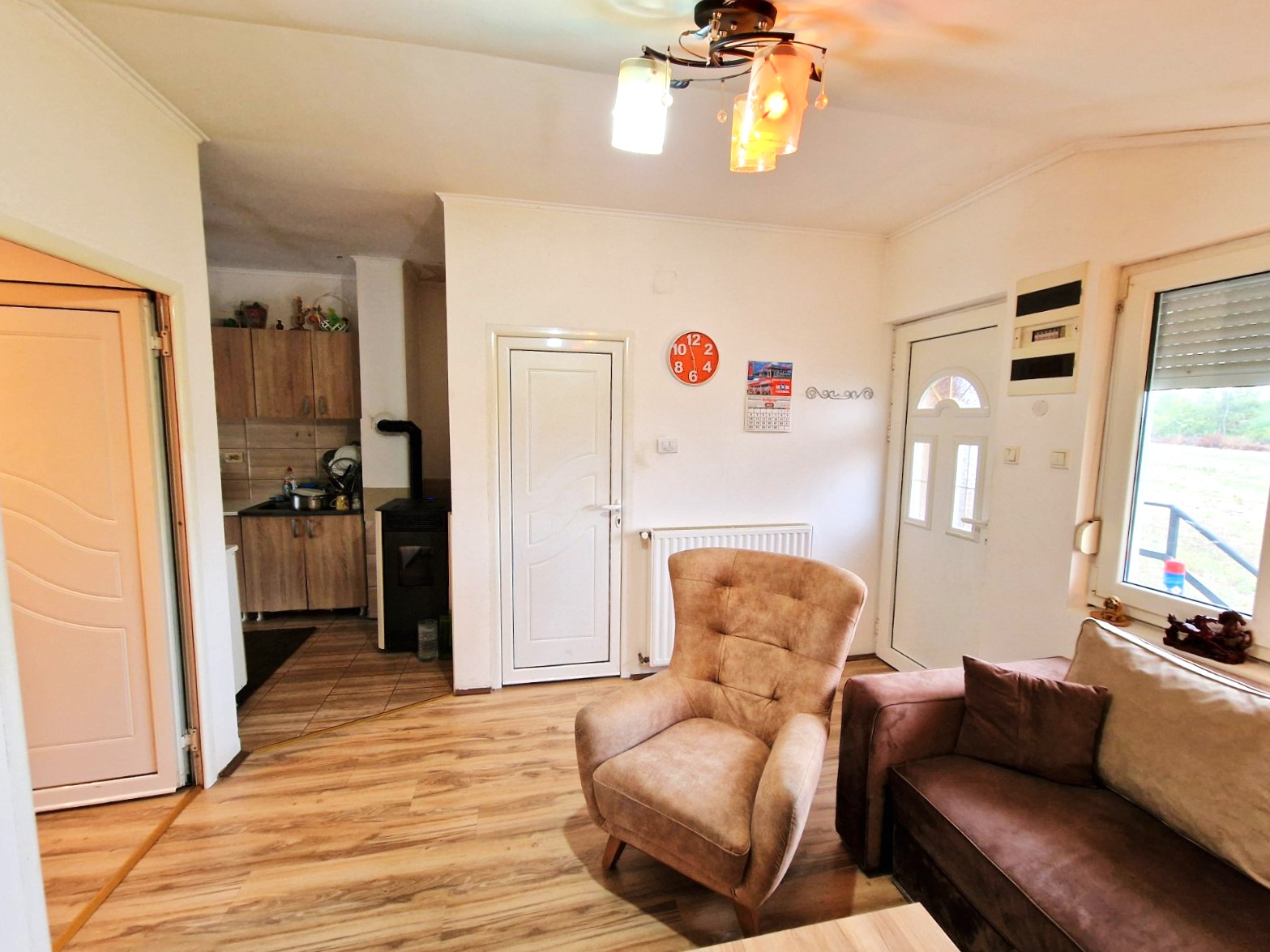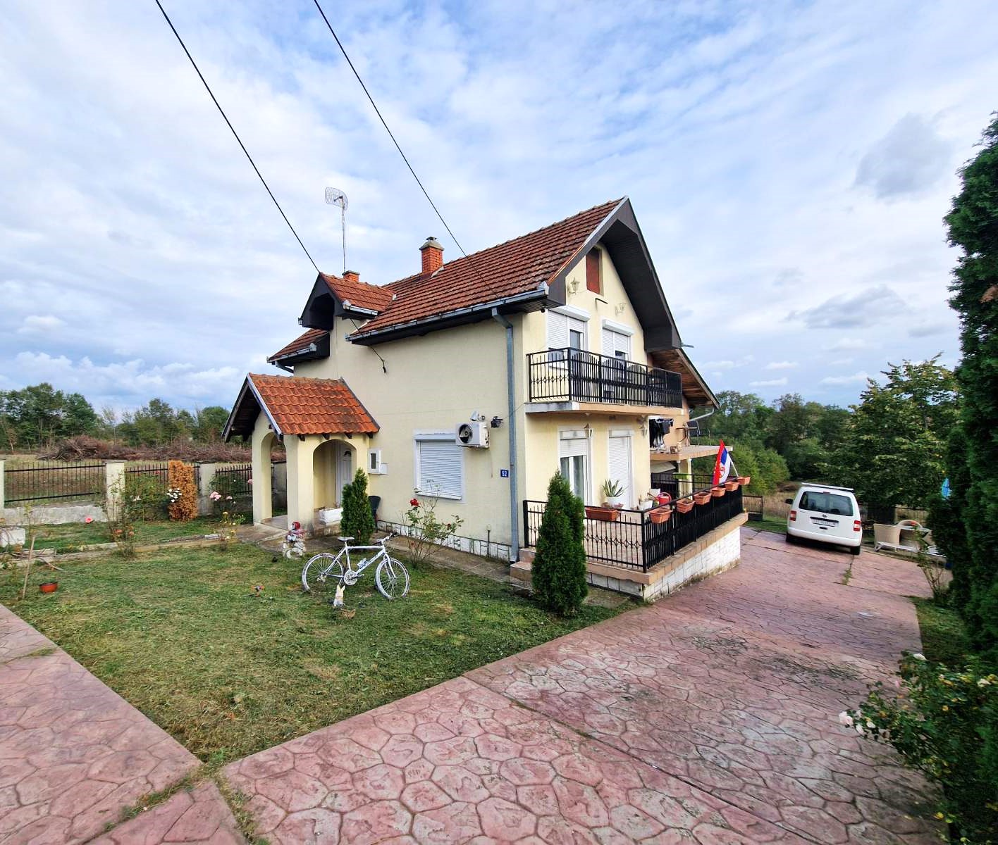 Opremljenost: PVC i drvena stolarija, podovi – parket, laminat, keramika. Trofazna struja, bunarska voda, septička jama.