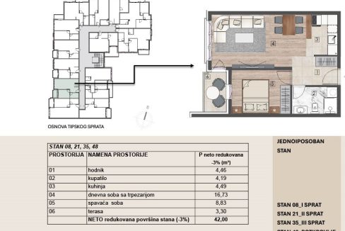 Na prodaju jednoiposoban stan površine 40.63m² u kvalitetnoj novogradnji. Stanovi su dostupni…