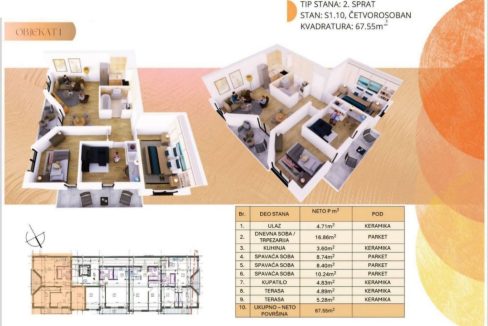Idealni za porodiceNa prodaju su trosobni stanovi površine 65–68 m² u kvalitetnoj…