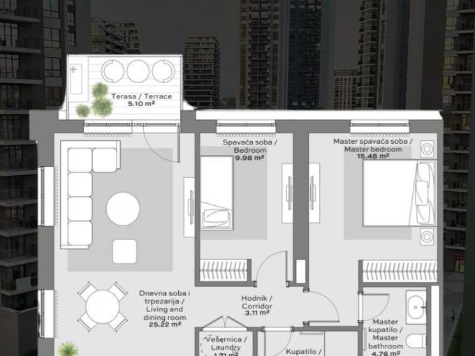 U ponudi je luksuzno opremljen dvoiposoban stan površine 77 m²…